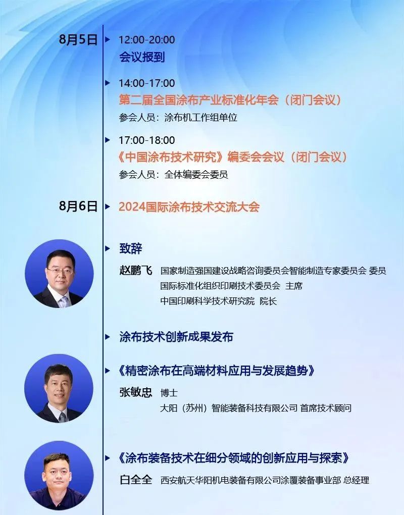 【會(huì)議議程】2024國(guó)際涂布技術(shù)交流大會(huì)暨第二屆全國(guó)涂布產(chǎn)業(yè)標(biāo)準(zhǔn)化年會(huì)