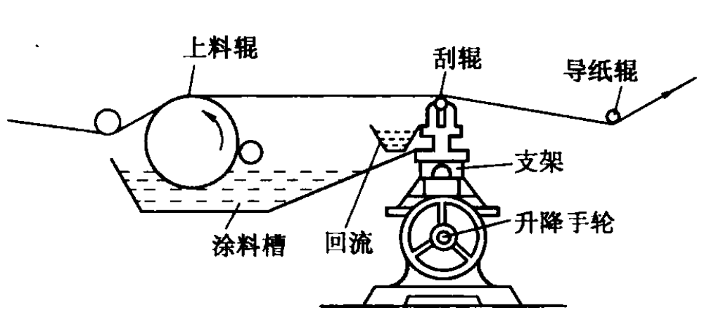 用于氣刀涂布機(jī)的涂料固含量較低,對(duì)原紙的濕強(qiáng)度有較高的要求,干燥部的負(fù)荷也較大,同時(shí)限制了車速的進(jìn)一步提高。氣刀涂布紙的涂層保留原基材表面的輪廓,因此要求原紙的平滑度不能太低。氣刀涂布機(jī)車速較高時(shí),隨著氣刀風(fēng)壓增高、風(fēng)量增大,飛漿的問題將會(huì)變得嚴(yán)重,因此回流槽設(shè)計(jì)應(yīng)合理。