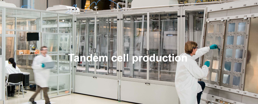2010年的德國新創(chuàng)公司Oxford PV,專注于真空沉積型鈣鈦礦/硅串聯(lián)太陽能電池的開發(fā)。該公司使用典型發(fā)光效率為20-22%的硅系大陽能電池,在其上面進行真空沉積型鈣鈦礦大陽能電池的制程,讓組合的鈣鈦礦/硅串聯(lián)大陽能電池效率超過30%(參考信息5)。Oxford PV公司位于德國柏林附近哈佛爾河畔勃蘭登堡的工廠擁有世界上第一條硅基鈣鈦礦串聯(lián)太陽能電池批量生產(chǎn)線(圖10所示)。