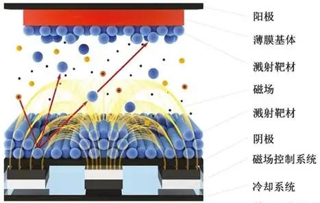 原理:在電場(chǎng)作用下,由陰極釋放的高能電子轟擊氬亞原子,并形成氬離子,帶正電的氬離子轟擊陰極,濺射的靶材原子在基地表面積聚成膜。工藝特點(diǎn):-薄膜附著力強(qiáng);-適用材料廣,包括但不限于金屬、合金;-可多層復(fù)合。應(yīng)用:半導(dǎo)體金屬布線(xiàn)、手機(jī)屏幕ITO導(dǎo)電膜、裝飾鍍層。