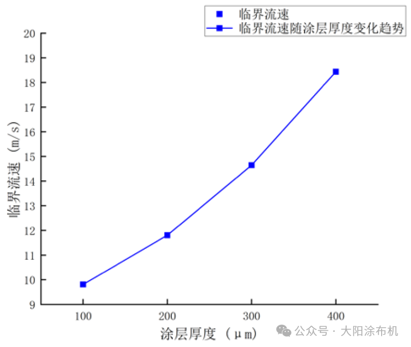 理論臨界流速隨涂層厚度變化趨勢圖