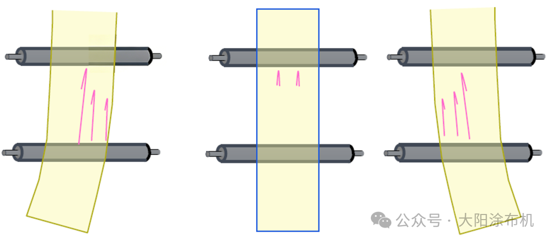 采用展平輥、弧形輥、凹面輥等功能輥,通過特定弧形輥面設計使基材橫向展寬,抵消因卷曲、張力不均或干燥收縮產生的內應力。需根據(jù)基材質地、寬度與張力動態(tài)調節(jié)彎曲量和平移位置,以達到最佳舒展效果。